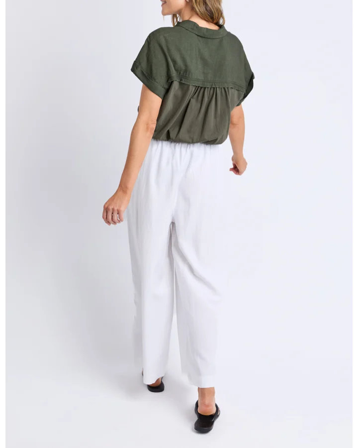 The Maura Pants in crisp White are designed for effortless comfort and elegant, relaxed styling.