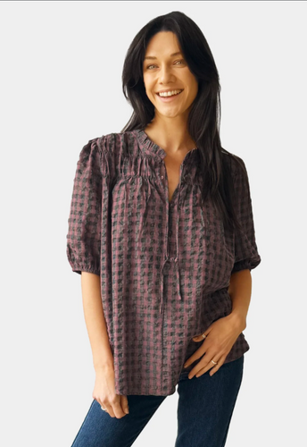 Tiny Check Blouse - Blush 25% OFF AT CHECKOUT