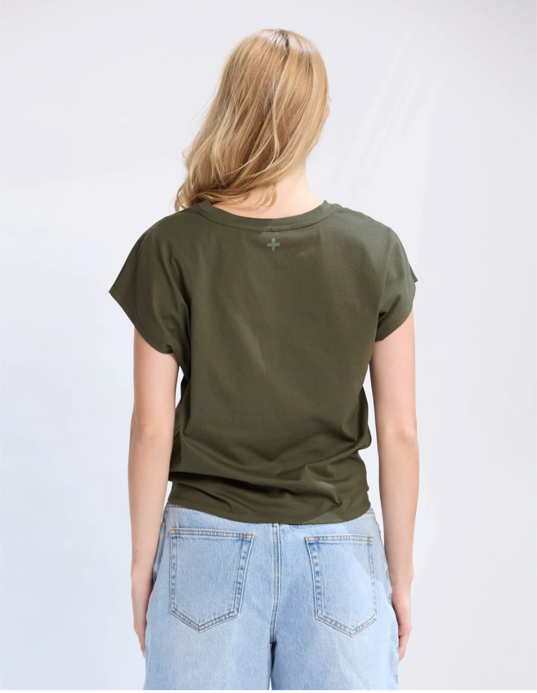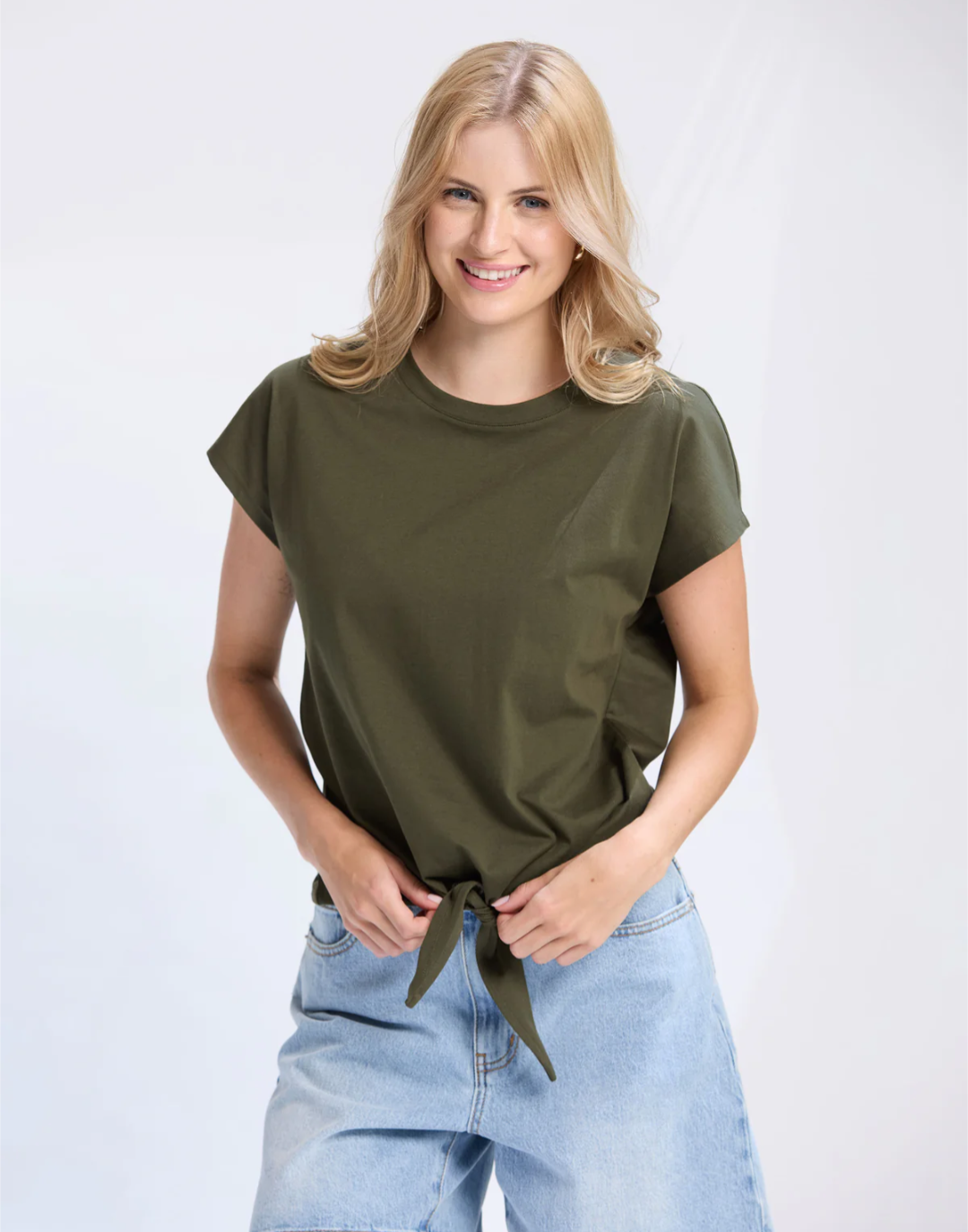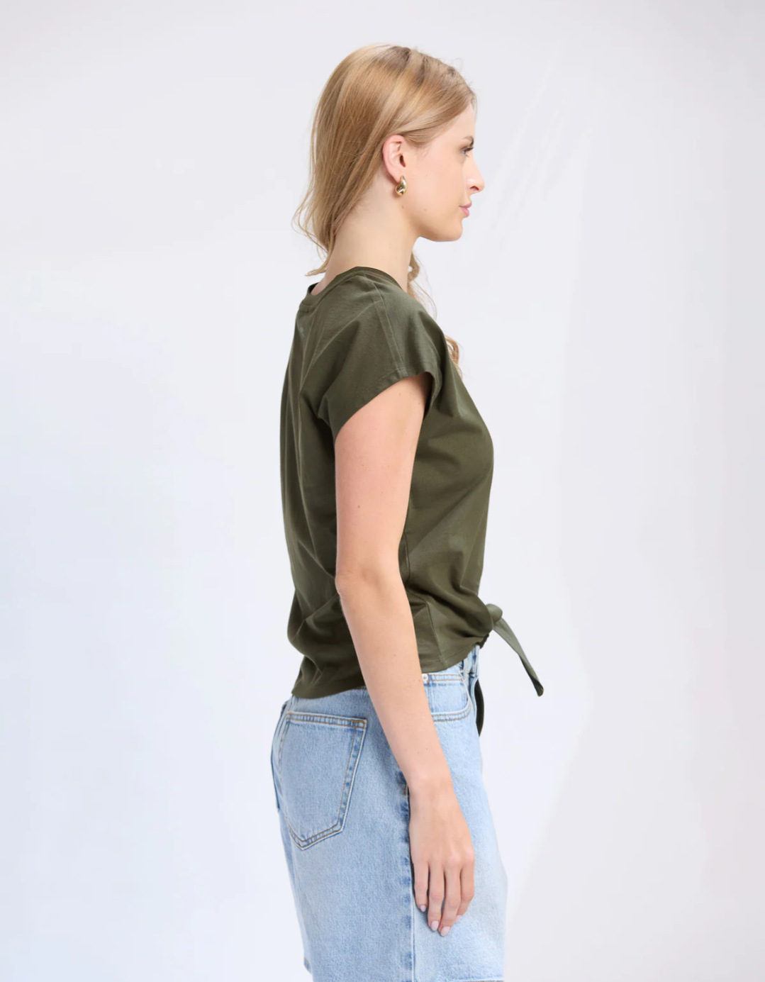 Effortlessly elevate your everyday style with the beautiful Top Knot Top in a classic Army shade. Designed for a life you love, this tee is the perfect blend of casual comfort and chic detail.