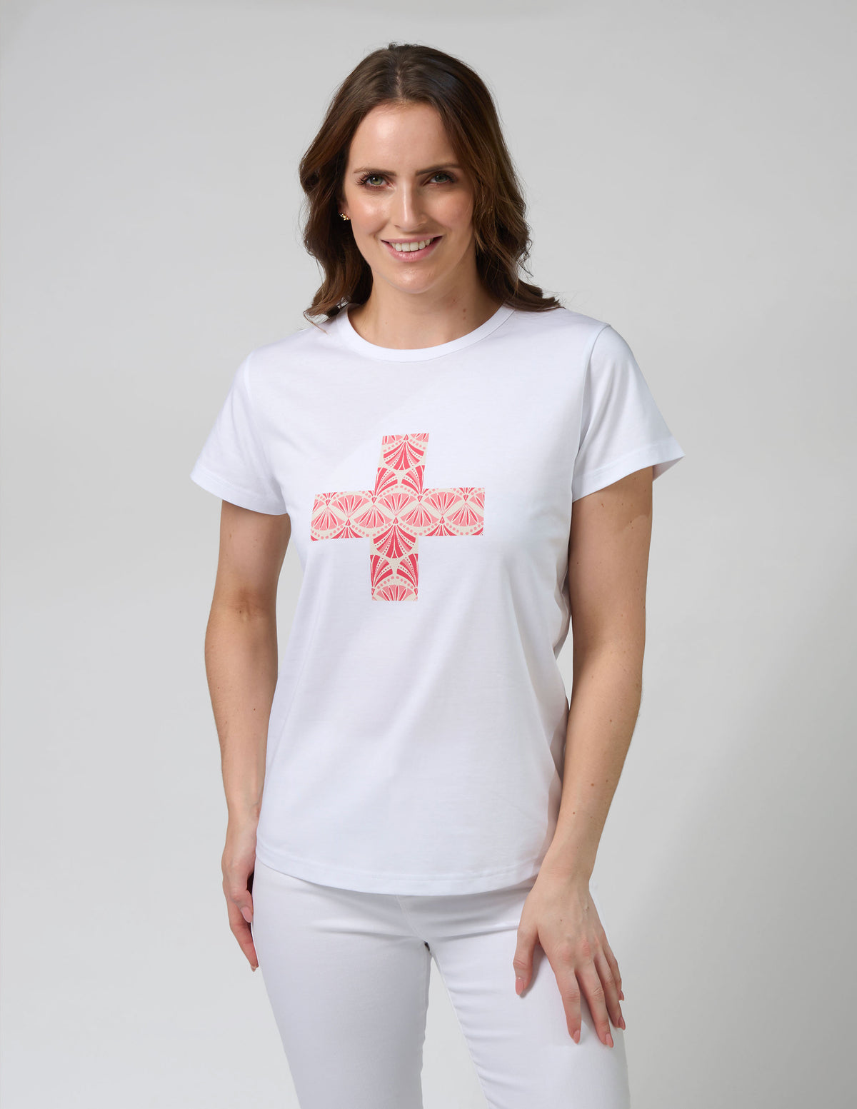 The Classic Tee in White featuring the fun Strawberry graphic is the perfect way to add a playful pop to your essential casual wardrobe.