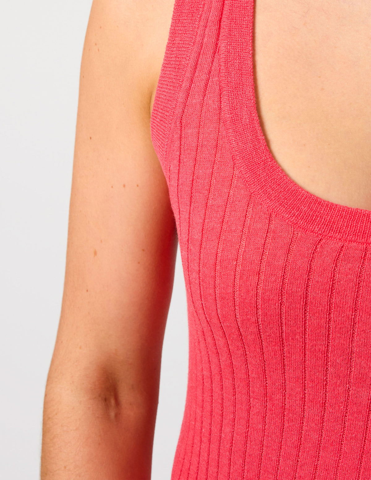 The Kimi Tank in a vibrant Raspberry hue is the essential foundation piece that adds a pop of rich colour and beautiful texture to your summer wardrobe.