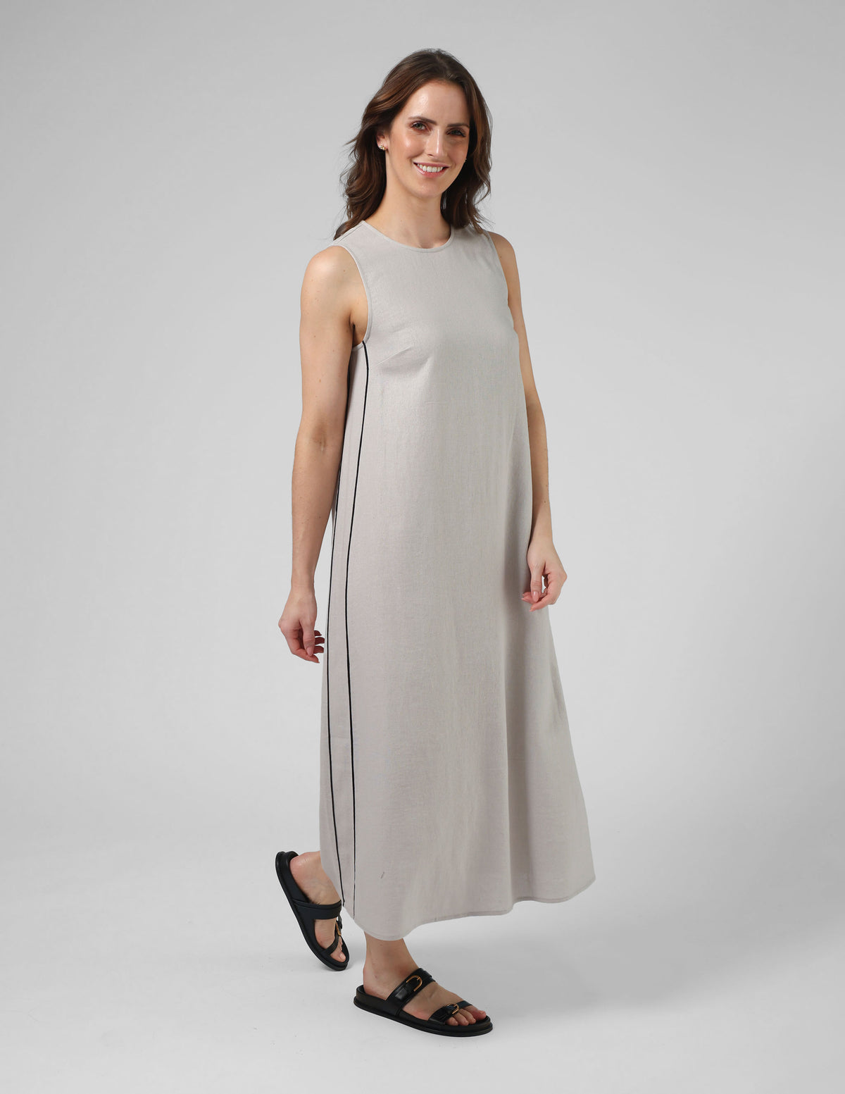 The Zora Dress in a versatile Natural shade is the perfect foundation for effortless seasonal styling. This beautiful A Line maxi dress creates a universally flattering silhouette with an easy, comfortable drape.